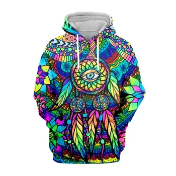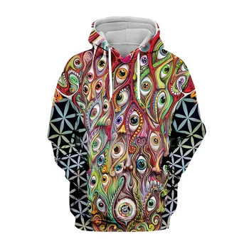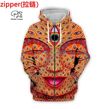 Men’s Psychedelic Art Magic Mushroom Trippy Hippie Casual Print Leaf Zip-Up Hoodie Sweatshirt