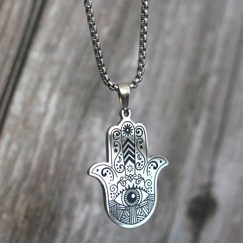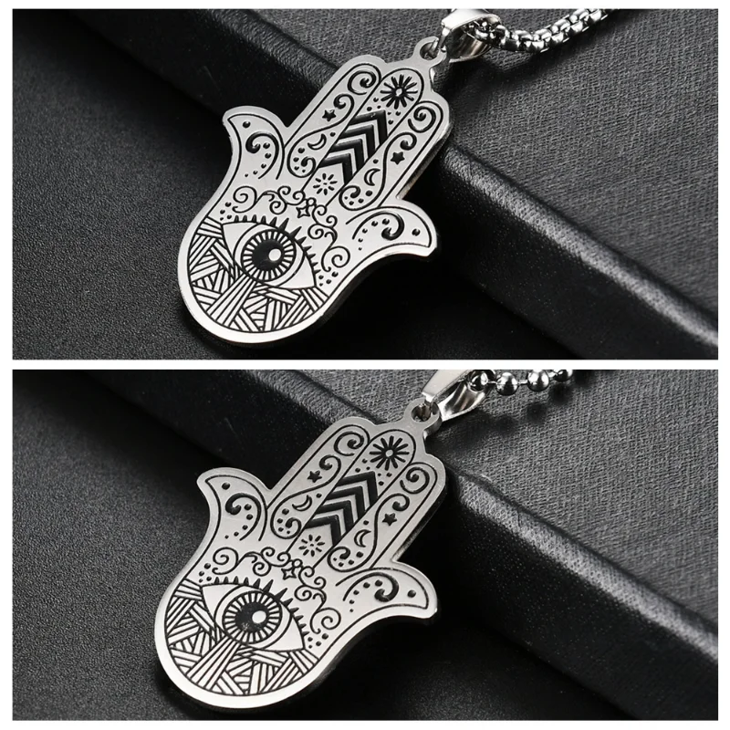 2023 Stainless Steel Ethnic Fatima Hamsa Hand Pendant Necklace Men Women Turkish Evil Eye Necklace for Men Spiritual Jewelry