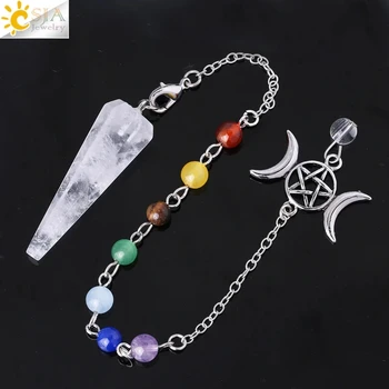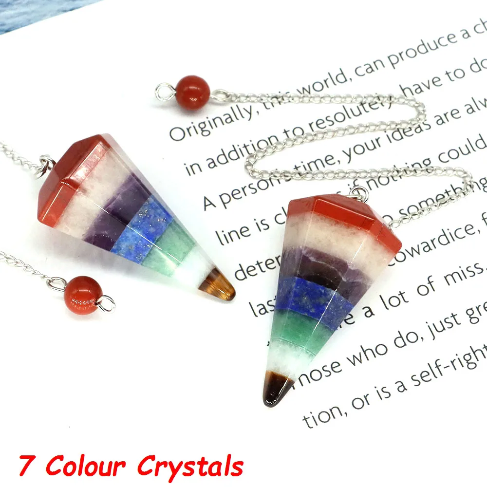 Natural Stones 7 Chakra Crystal Pendulum for Divination Dowsing Spiritual Meditation Reiki Healing Pendant Necklace Jewelry Gift