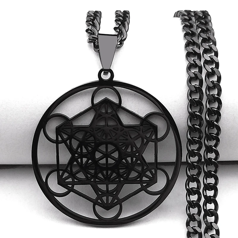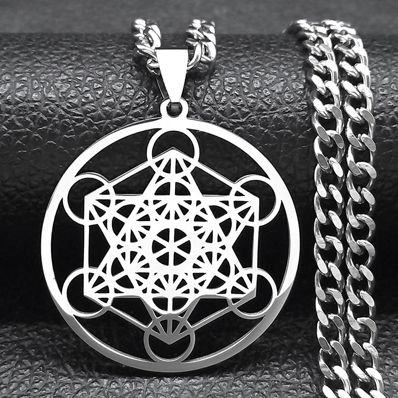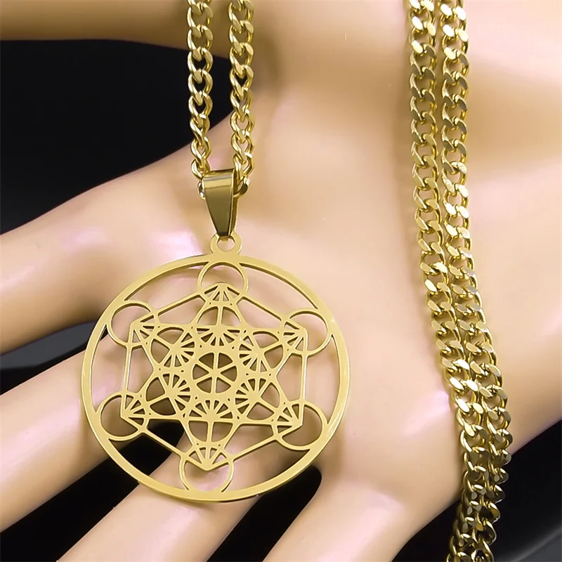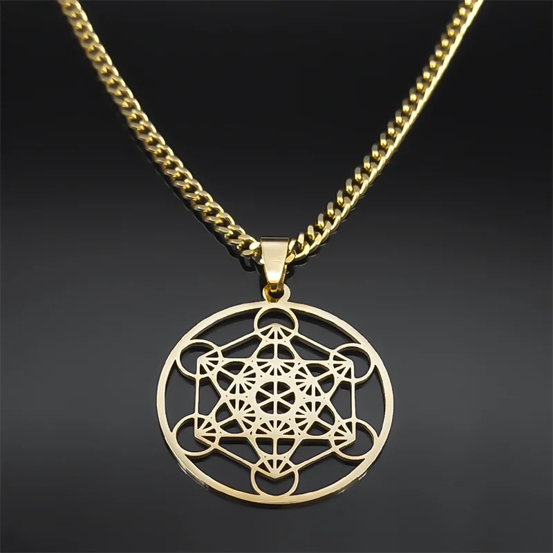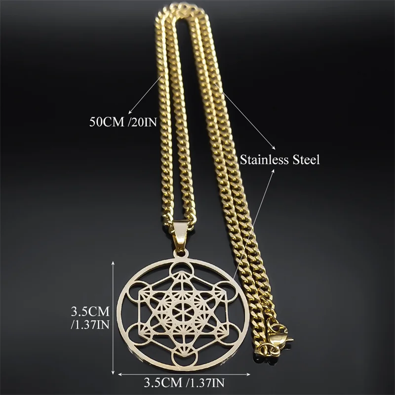 Sacred Geometry Metatron Cube Necklace for Women Men Stainless Steel Gold Color Powerful Amulet Chakra Spiritual Jewelry N620S06